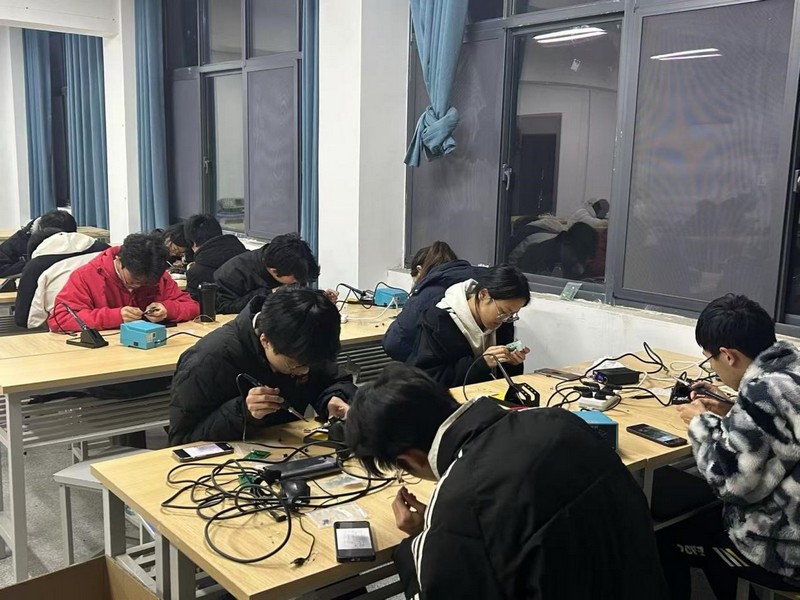 12月18日,比赛正式拉开帷幕。赛场上的选手们全神贯注、精细操作,展现了扎实的专业功底和良好的竞技状态。评委根据电路设计合理性、焊接工艺水平与作品稳定性等方面对学生作品进行了评审,最终评出一、二、三等奖若干名。