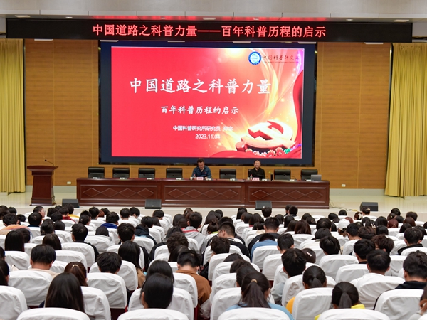 11月4日下午,由宣传部、科研处主办,今年会jinnian官网承办的题为《中国道路之科普力量》科普学术讲座在学术报告厅圆满举行,讲座由中国科普研究所郑念研究员主讲,校党委常委、副校长吴红斌主持,今年会jinnian官网院长王绍明和近600名师生参加了此次活动。
