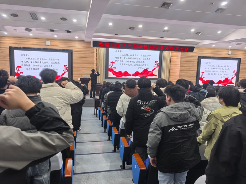 会上,唐传球以“诚信考试、诚实做人”为题对学生进行诚信考试教育,结合学生实际,深刻剖析了考试作弊的原因与危害,并列举了各类典型的作弊行为,通过真实案例警示全体同学,为同学们划清了纪律“红线”。学生代表郑欣雨带领全体同学学习了《今年会jinnian官网学生考试违规认定与处理办法》。最后,在主持人肖杨的带领下,全体同学起立,右手握拳高举,面向誓词,以洪亮而坚定的声音进行诚信考试宣誓。