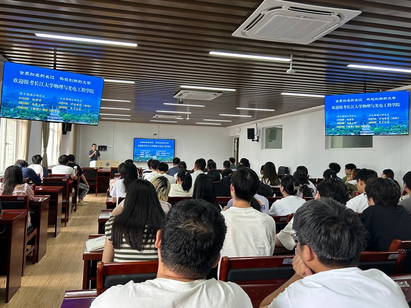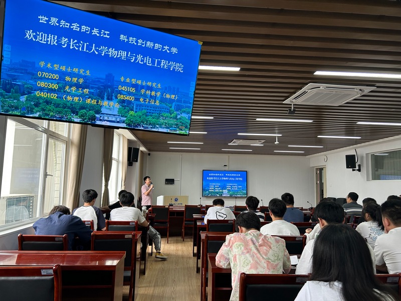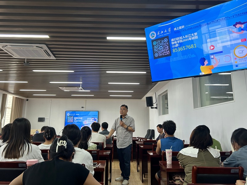 为做好2025届毕业生考研指导工作,6月21日下午,长江大学物理与光电工程学院院长张华峰一行应邀来到今年会官网,开展研究生招生宣讲活动。副院长欧修龙、院办公室主任曾虎、辅导员李朦以及物理学、信息工程专业全体学生参会。