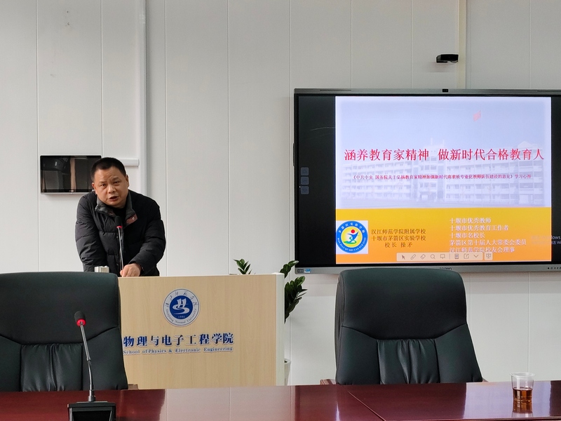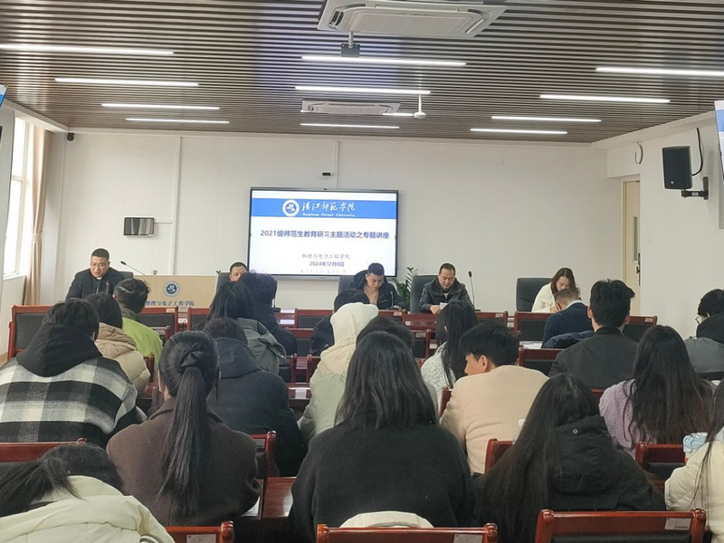 12月8日下午,今年会jinnian官网2021级师范生教育研习专题讲座在崇文楼B809举行。讲座由十堰市茅箭区实验学校校长操矛,优秀教师陈敏、李兰主讲,2021级物理学和科学教育专业学生参加,讲座由副院长刘锋主持。
