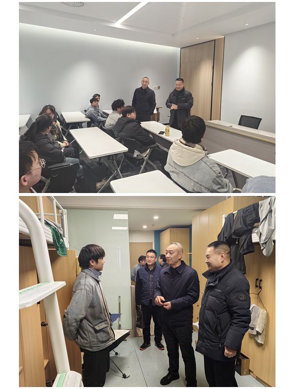 章平一行看望了在企业的实习生,走进学生宿舍了解大家的工作情况、食宿问题和实习感受,鼓励同学们不断提升自己的综合素质和就业竞争力,为实现个人价值和社会价值贡献力量。同学们对于学校和老师的关心,积极发言,备受鼓舞。