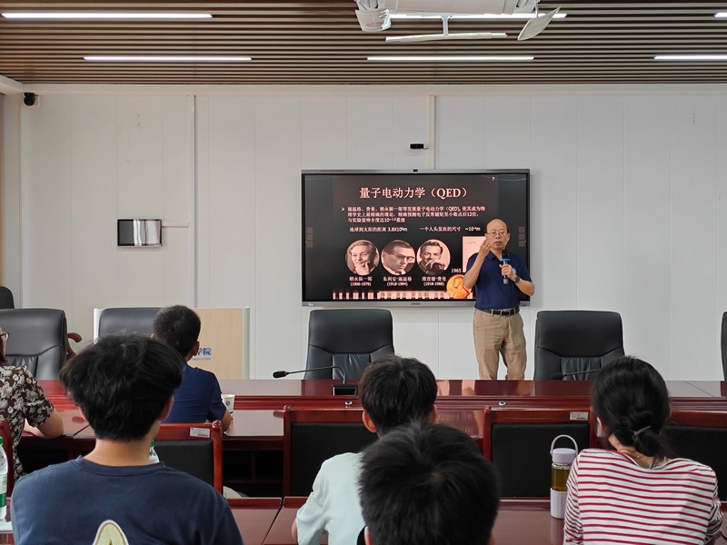 周代梅教授以《高能核碰撞部分子-强子级联模型-PACIAE》为题,介绍了高能粒子碰撞及事件发生器,一种基于PYTHIA的蒙特卡洛事件生成器PACIAE模型,及其用于轻子-轻子、轻子-强子、轻子-核、强子-强子、强子-核和核-核等多种碰撞过程描述。周教授还结合自己的求学历程和成长经历,鼓励同学们积极培养自身的学习能力,用阳光自信的态度面对人生,最终达成全面发展。