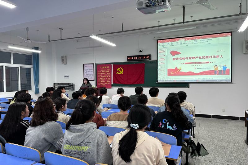 4月16日晚,学院2024年上半年入党积极分子培训班在崇文楼A412开班,学生党支部书记王超然《做讲党性守党规严党纪的时代新人》为题讲授首场党课。