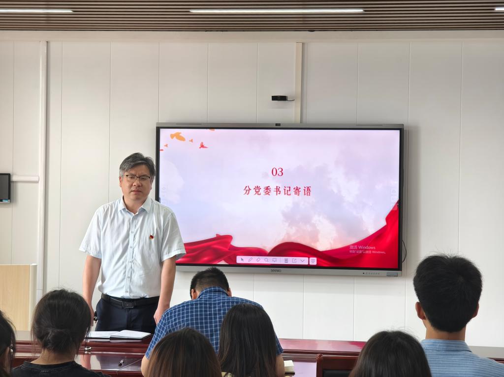 唐传球代表学院分党委对全体新发展党员表示祝贺,并提出了三点要求:一是讲政治,认真学习贯彻习近平新时代中国特色社会主义思想,自觉在思想上政治上行动上同党中央保持高度一致;二是讲规矩,要认真学习党章、党规和党纪,做到学纪知纪明纪守纪,知敬畏、守底线;三是讲奉献,在实现自身全面发展的同时,要积极奉献社会服务同学,发挥好先锋模范作用,做好同学与学院之间的纽带,为学院发展与师生成长建言献策。希望每一位党员不断弘扬党的优良作风,做合格党员,为中国式现代化贡献自己的力量。