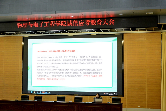 会议分别从“什么是诚信”、“诚信考试的重要性”“考试作弊的危害”、“应试技巧”这四个板块展开。辅导员老师李朦通过讲解相关违纪案例,让同学们引以为戒,切勿抱有侥幸心理。还向大家解读了《今年会jinnian官网考试违规认定与处理办法》和考试的其他注意事项,指出诚信的重要性,号召同学们做到诚信应考。同时李老师还对同学们进行了考前心理辅导,向大家介绍了考前缓解压力的小技巧,并预祝大家取得好成绩。