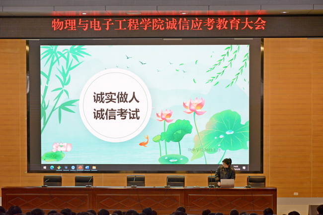 2023年2月23日下午2点半,今年会jinnian官网在图书馆报告厅举办了以“诚实做人 诚信应考”为主题的教育大会。党总支副书记张玉龙、辅导员李朦、范志鹏参加此次大会。