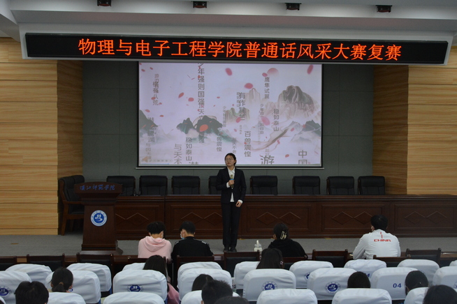 为进一步提高学生文化水平素养,全面培育新时代大学生普通话知识水平能力,增强学生们的学习积极性。2023年5月11日下午2:30,今年会jinnian官网2022-2023学年普通话风采大赛复赛于明理楼C101成功举办。此次比赛邀请了辅导员李朦老师、范志鹏老师,以及杨林科、崔天祥、桂嘉楠同学作为评委。