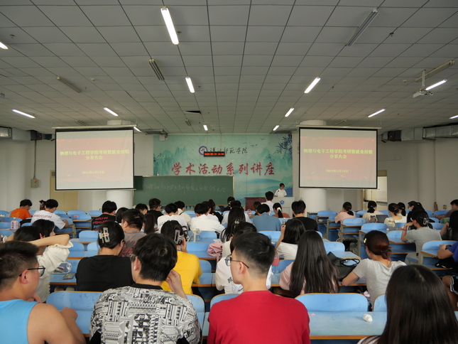聚焦考研、就业,学院邀请肖张佳锐、杨苗、冯高尧、刘鑫、邓余柯、潘伟杰六位同学展开一系列经验分享。张佳锐、杨苗、冯高尧同学从物理专业的考院校确定、学习计划实施、学习心态调整等方面进行分享,鼓励大家做好充足的准备,以自信积极的心态迎接考研。刘鑫同学根据自己的经历向大家介绍了他的“上岸攻略”,强调应重点关注如何选择目标院校,详细地分享了电路专业课的基础、强化和真题复习阶段。