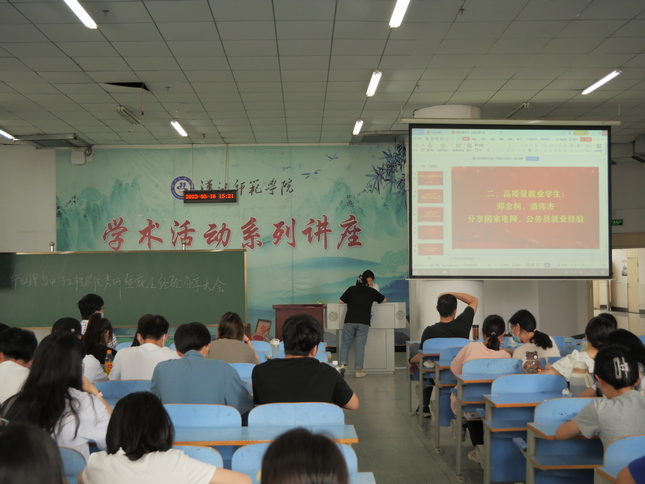 2023年5月19日,今年会jinnian官网在明理楼C201召开以“榜样指引 前途似锦”为主题的考研及就业经验分享大会。本次会议由邓南娴主持。党总支副书记张玉龙、学院辅导员李朦、范志鹏、20级全体学生、部分其他年级学生参加。