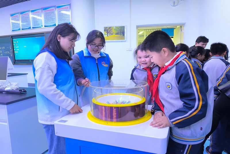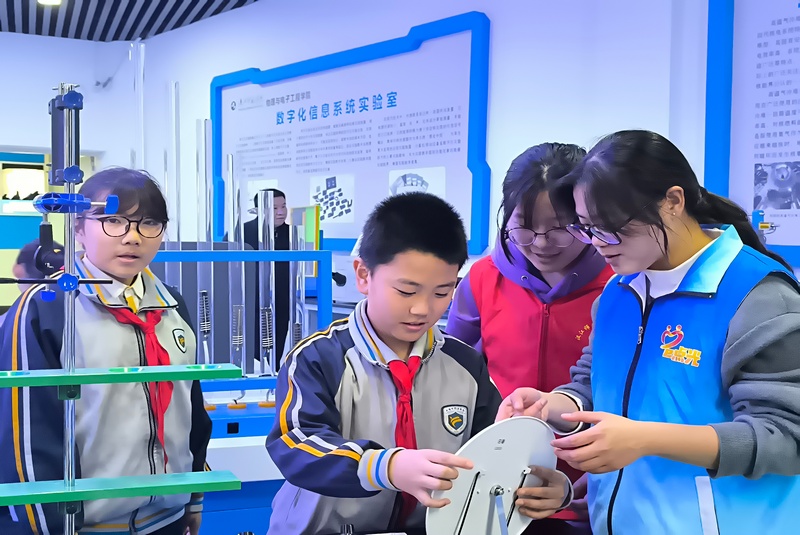4月10至12日,今年会jinnian官网“e点光”志愿服务队携手物理演示实验室开展实验室开放日活动。十堰市外国语小学的34名师生走进物理演示实验室体验科学的奥妙。