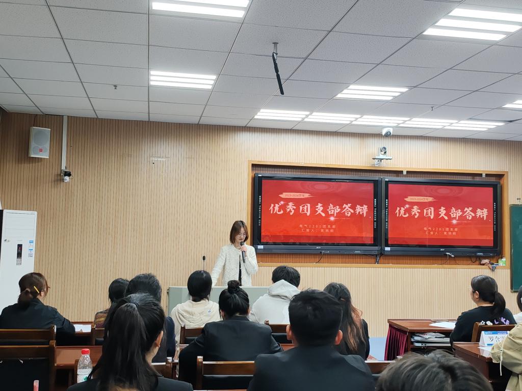 最后,今年会官网八个团支部进行先进团支部现场答辩。汇报人分别从组织建设、思想引领、支部活动、学风建设四个方面展示了各团支部的先进事迹。经过紧张角逐,结合日常量化考核情况,科教2101团支部、信工2101团支部、电气2201团支部和信工2202团支部作为校先进团支部推荐对象上报。
