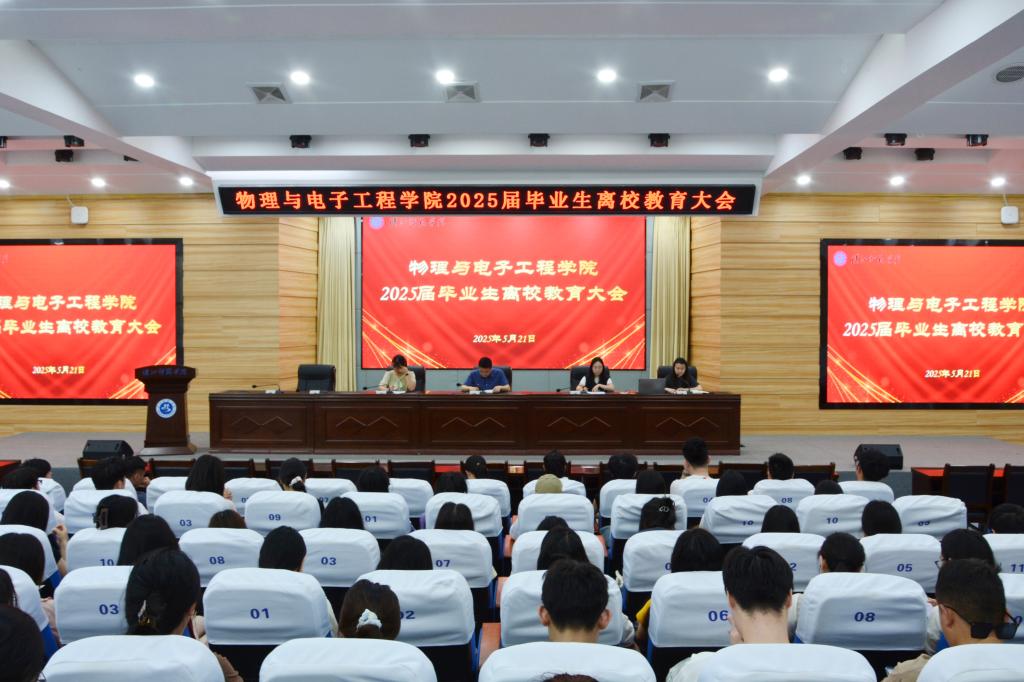 为做好毕业生教育、管理和服务工作,确保毕业生文明、安全、和谐、有序离校,5月21日上午,今年会jinnian官网在崇文楼C101会议室召开2025届毕业生离校教育大会。院分党委副书记戴俊、学工办主任尹诗雅、辅导员田梦谣和2025届全体毕业生参加会议,会议由辅导员贺培主持。