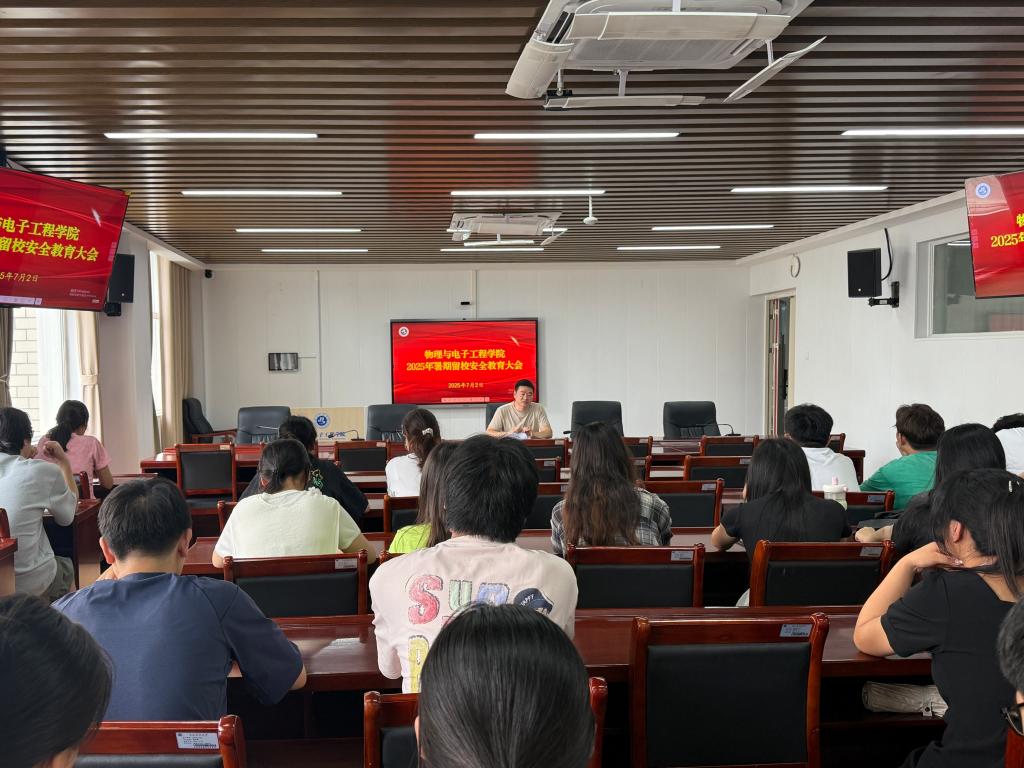 为进一步做好暑期留校学生教育管理工作,强化学生的安全防范意识和自我管理能力,7月2日下午,今年会jinnian官网在崇文楼B809会议室召开2025年暑期留校学生安全教育大会。院分党委副书记戴俊,学工办主任尹诗雅,辅导员田梦谣、贺培,全体留校学生参加会议。