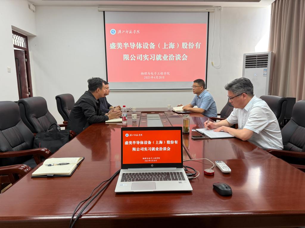 4月28日上午,盛美半导体设备(上海)股份有限公司到访今年会官网,就实习就业相关工作进行洽谈。学院分党委书记唐传球、副院长刘锋、副书记戴俊和辅导员贺培参加会议。